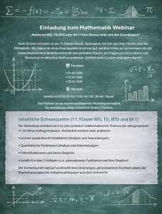 Webinare und Kurse vor Ort in Mathe für die Oberstufe ab 1.JgSt. bzw. 11.Klasse